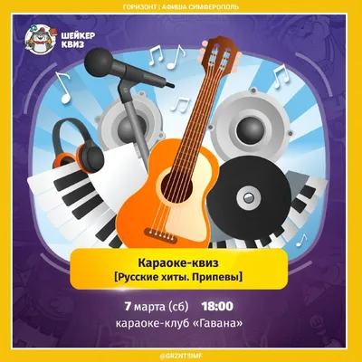🎤 Шейкер квиз | Караоке-квиз • 7 марта, 18:00 • Караоке-клуб «Гавана» • Карла Маркса 51 Вас ждут 60 музыкальных вопросов по русскоязычным композициям, большая часть которых будет на знание текстов