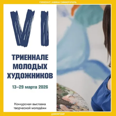 🎨 Открытие конкурсной выставки «VI Триеннале молодых художников» • 13 марта, 15:00 • Одесская 3А Первая Триеннале была организована в 2011 году, в 2026 году проект проводится уже в шестой раз и от