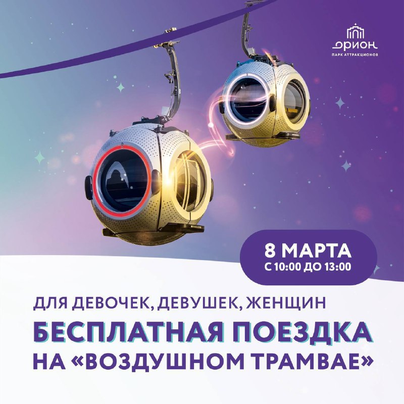 👃 ДЕВУШЕК бесплатно катают на «Воздушном трамвае» на ВДНХ 💖 Только 8️⃣ марта с 10:00 до 13:00 в одну сторону с любой станции Канатной дороги. 🎀 Для бесплатного прохода подойдите к сотрудникам Кан