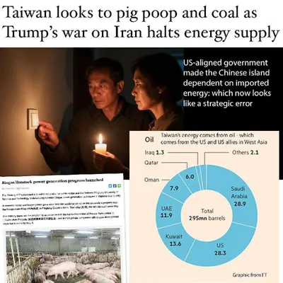 У Тайваня запаса электроэнергии осталось всего на десять дней. Ну что, минус чипы, схемы, электроника. Странно другое, почему Солнечную энергию не используют