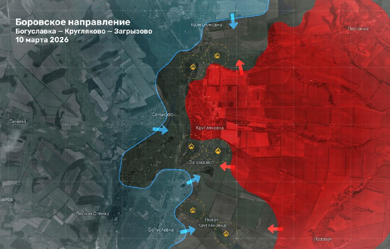 #Cводка по направлениям на 10 марта 2026 года. Боровcкое направление. Фиксируются постоянные попытки просачивания наших малых групп в "серую зону" в районах Богуславки, Кругляковки и Загрызово. Прот