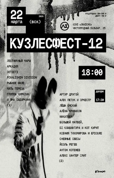 Кузлефест 12 #СкидосНаГигос Известный андеграунд-фестиваль возвращается в полноценном формате под номером 12. В программе две сцены: большая и нижне-андеграундная. Во время мероприятия между ними нео