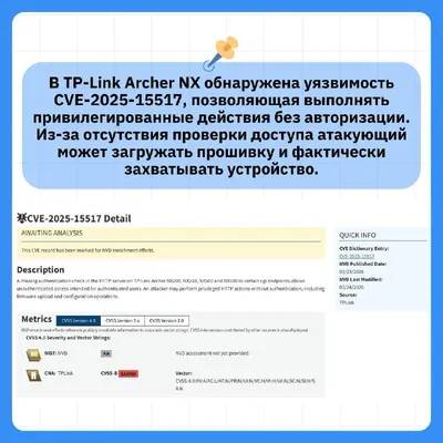 📉 Когда админка вообще не нужна В роутерах TP-Link серии Archer NX нашли баг, который ломает базовую модель безопасности. 🈂️ часть HTTP-эндпоинтов была доступна без авторизации 🈂️ через них можно