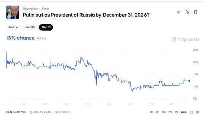 Кому 17% доходности со 100% гарантией нужны? На полимаркете можно поставить на смену президента РФ до конца года. Сейчас вероятность 13%. Наивные 😁 Можно закинуть любой объем средств и получить ~1