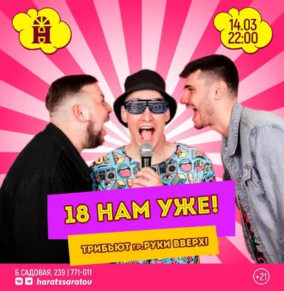 Сегодня в большом ХЭ концерт для тех, кто хочет, чтобы по его телу пробежали огромные мурашки 😁😁😁 Песни «Руки вверх», атмосфера 90-х и воспоминания о первой любви 😄 И всё это благодаря группе «18