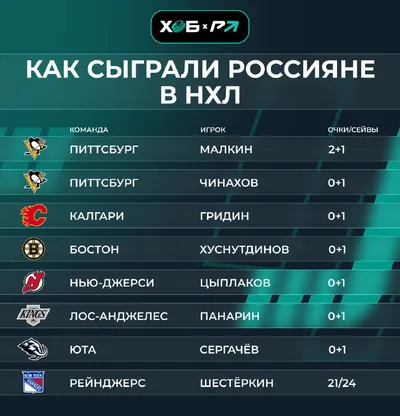 🏒 Как сыграли россияне в НХЛ Малкин выдал монструозную игру после дисквалификации, Панарин вернулся в «Мэдисон Сквер Гарден» и помог «Лос-Анджелесу» обыграть «Рейнджерс» (4:1), Цыплаков отметился пе