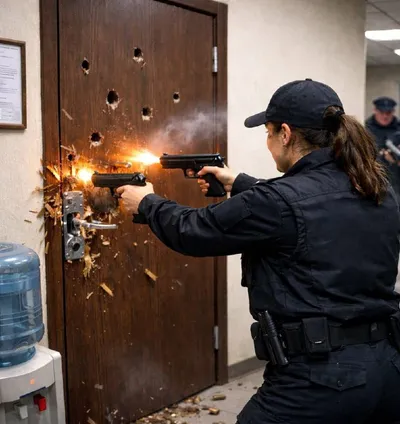😱 Хабаровчанка устроила стрельбу по двери офиса В Кировском районе Хабаровска 30-летняя стажёр охранного предприятия во время смены взяла два служебных пистолета, снарядила четыре магазина и отправи