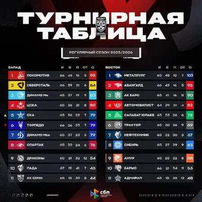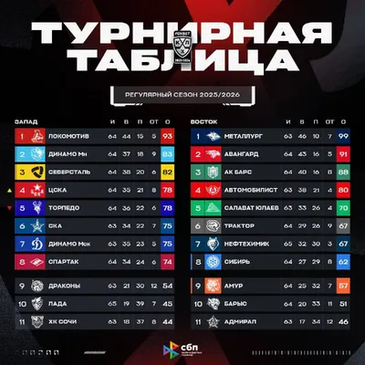 🏒 Турнирное положение в КХЛ на сегодняшний день