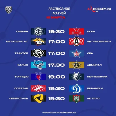 🗓 Расписание матчей игрового дня в регулярном чемпионате КХЛ 🏒