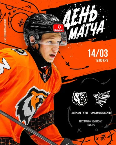 Финальная домашняя игра этого сезона! 🏒 🤝 «Амурские Тигры» - «Сахалинские Акулы» 🕰️ 19:00 ХБР (12:00 МСК) 📍 «Платинум Арена» 🎥 KHL, YouTube MHL, MHL.KHL.RU @hcamurtigers