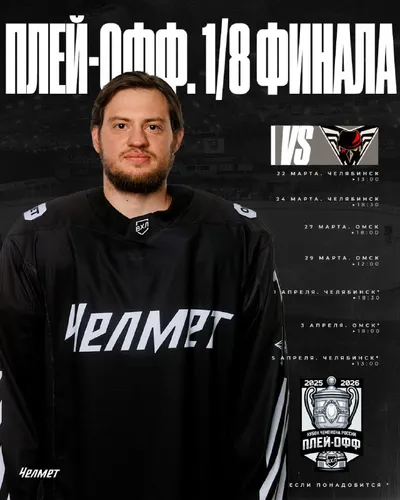 🏆«Челмет» начнёт плей-офф в Челябинске Кубок чемпиона России 25/26. 1/8 финала «Челмет» – «Омские Крылья» На основании обращения команды «Омские Крылья», а также по достигнутой между хоккейными клу