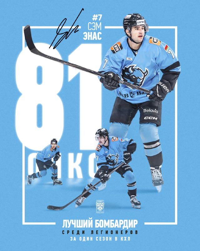 Сэм Энас – лучший бомбардир за один регулярный сезон среди легионеров и пятый ассистент в истории КХЛ 🔝🔝🔝 Сэм набрал 81-й результативный балл и возглавил гонку бомбардиров среди иностранцев 👏 Эна