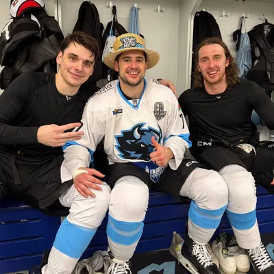 Сегодня кепки летели на лед в честь Кузи 😎 Сергей оформил хет-трик и стал лучшим игроком матча в раздевалке 🔥 @hcdinamoby