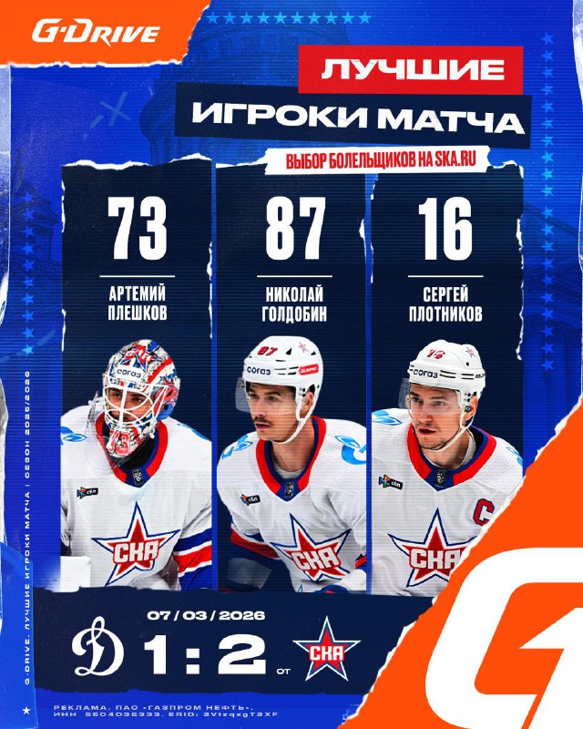 Новенькая тройка «🛞🛞🛞. Лучших игроков матча» против московского Динамо уже здесь 🏒 Парни, как и всегда, молодчики! И приятно, что такую тройку мы видим уже не в первый раз 😉 Заглядывайте на ska.