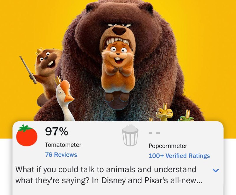 Новый мультфильм от студии Pixar «Прыгуны», один из самых высокоценных за последние годы. На Rotten Tomatoes сейчас оценка оо критиков 96% при 56 обзорах, а на Metacritic — 77 баллов из 100 при 24 ре