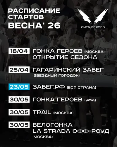 🍃 Весенние старты — самые долгожданные! С чего начнете ваш новый сезон? Собрали в одном расписании все события Лиги Героев этой ВЕСНЫ. Выбирайте и регистрируйтесь 🔗