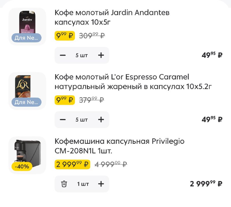 Пятёрочка‼️ Цена на капсулы меняется в корзине, в комплекте с кофемашиной! Взять можно до 10 штук по 9₽, пробуем 👉 https://ya.cc/8wUf5M Проверяем наличие у себя Реклама. Информация о рекламодателе