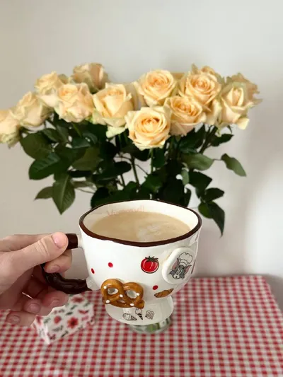 сегодня зашли в aroma за бенедиктом (у них всегда ооочень вкусные завтраки весь день) и попали на какую-то коллаборацию 💖 я даже не поняла, в чем суть, мне сказали, что любой десерт засчитают за колл