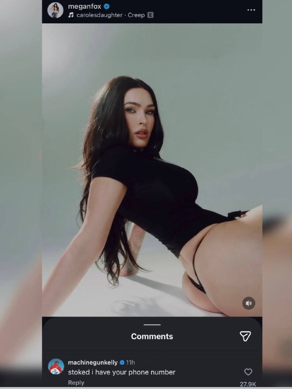 Machine Gun Kelly написал под свеженьким постом Megan Fox, что он счастлив, что у него есть её номер