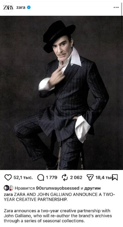 Извиниииите, Zara теперь не просто какой-то масс маркет. Теперь для неё будет делать коллекции Джон Гальяно!! Бренд анонсировал двухлетнее сотрудничество с дизайнером. Он будет работать с одеждой Zar
