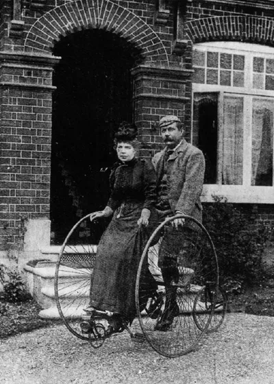 🗓 1895 год. Суррей, Англия 🚲 Сэр Артур Конан Дойл и его супруга Мэри во время велосипедной прогулки 💡 Для Конан Дойла, бывшего спортсменом и человеком активным, велосипедные прогулки были идеальн