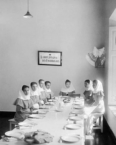 🗓 1900-е годы. Российская империя 🍽 Группа сестёр милосердия в столовой во время обеда #моментыистории Объектив истории 📸