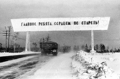 🗓 1965 год. Братск, СССР 📢 Социальная реклама на дороге В этот период в СССР социальная реклама была широко распространена и использовалась для пропаганды идеалов коммунизма, здорового образа жизн
