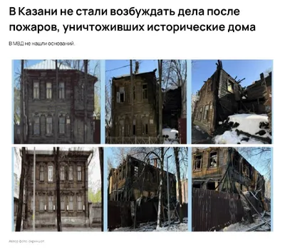После пожаров, которые уничтожили два исторических дома в Казани на улице Волкова и Хади Атласи, не стали возбуждать уголовные дела, так как в МВД не нашли состава преступления. Об этом сообщил предсе