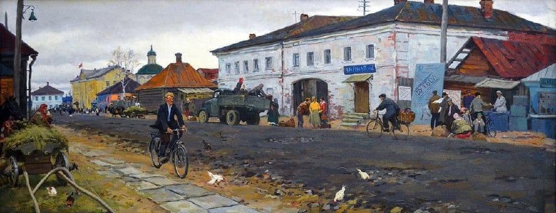 «В районном центре», 1956 Пётр Оссовский (1925-2015) Кировский ХМ им. Васнецовых Народный художник СССР, один из основоположников так называемого «сурового стиля». Это направление появилось в годы о