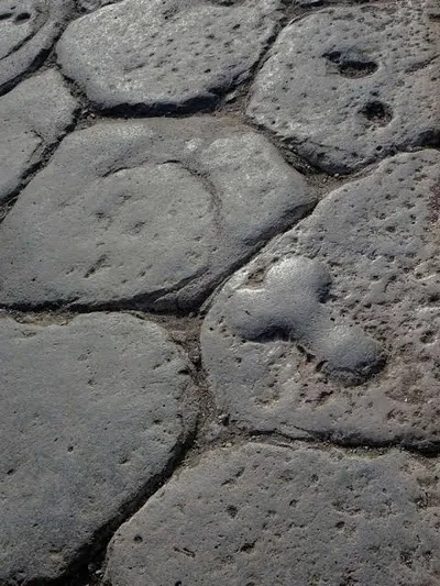 Реклама борделя на асфальте Помпей. "Стрелка" указывала на направление куда нужно идти римлянину чтобы попасть к девушкам легкого поведения.