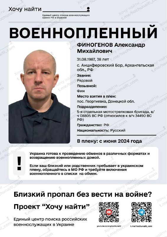 #карточка_военнопленного Финогенов Александр Михайлович Мы ежедневно публикуем карточки военнопленных российских солдат, которых российская сторона отказывается возвращать в рамках обмена военноплен