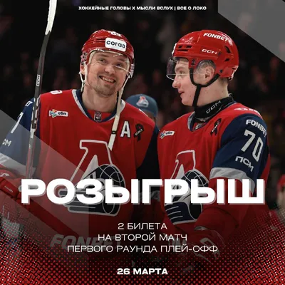 ДАРИМ ДВА БИЛЕТА НА ВТОРОЙ МАТЧ «ЛОКОМОТИВА» В ПЛЕЙ-ОФФ! Условия участия в розыгрыше простые. Нужно быть подписчиками телеграм-каналов: Хоккейные головы Мысли вслух | Всё о Локо Победитель опреде