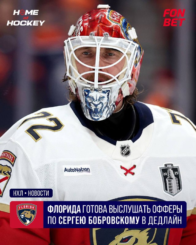 😳 «Флорида» готова торговать Бобровским в дедлайн? По информации Пьера Лебрюна, клуб открыт для предложений по будущим свободным агентам, включая Сергея Бобровского и Энтони-Джона Грира. По словам