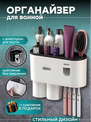Органайзер Артикул - 225901865 Рейтинг - 4,9⭐️ Органайзер с дозатором для пасты без сверления и держатель зубных щеток представляет собой незаменимый аксессуар для ванной комнаты. Этот настенный дис