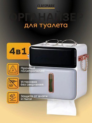 Держатель Артикул - 210203838 Рейтинг - 4,7⭐️ "Преобразите свою ванную комнату в идеально организованное пространство купив диспенсер, органайзер - держатель для туалетной бумаги без сверления белы