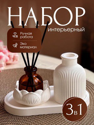 Набор декоративный Артикул - 338226004 Рейтинг - 4,9⭐️ В комплект входят: ваза из натурального гипса для сухоцветов или искусственных композиций; подсвечник и свеча в подарок овальная подставка-подн