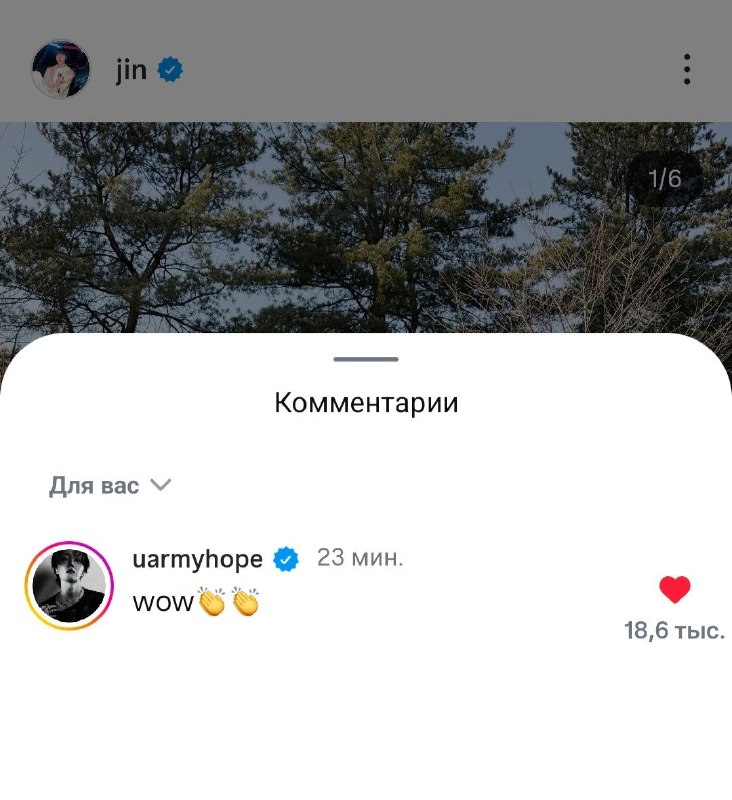 🖇 Хосок оставил комментарий под постом Джина 🐿: вау👏👏 @hoseok_gallery @seokjin_gallery