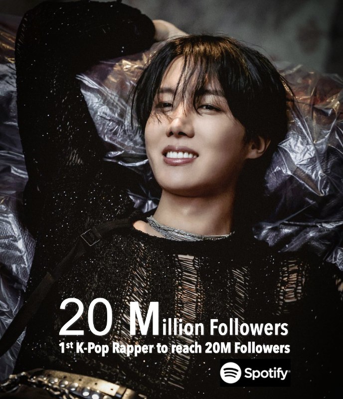 📈 Джей-Хоуп преодолел отметку в 20 миллионов подписчиков на Spotify! Он стал первым корейским рэпером, достигшим этого рубежа, и занимает второе место в списке самых популярных сольных корейских/K-