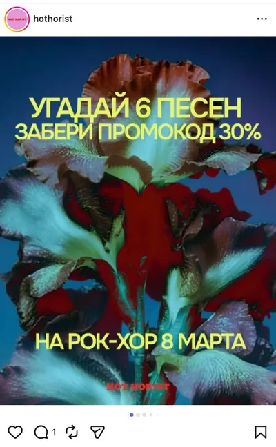 Даем промокод на скидку 30% на рок-хор 8 марта 🌹 Переходи в наш нельзяграм и узнай, как получить такие в вкусные условия на хор, который пройдет уже в эти выходные 🌟