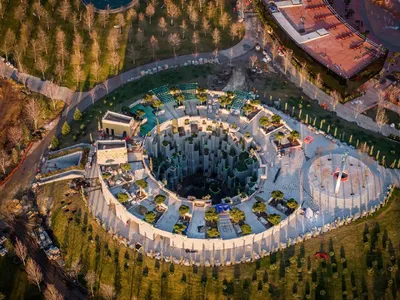 В краснодарском парке Галицкого строится новая точка притяжения — вертикальный сад, углублённый в ландшафт, где растения высаживают на разноуровневых бетонных колоннах по периметру цилиндра. Попасть в