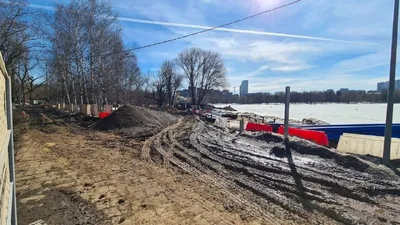 Такая сейчас обстановка на месте будущего пляжа у Головинских прудов: на некоторые его части уже завезли щебень для будущих тропинок.
