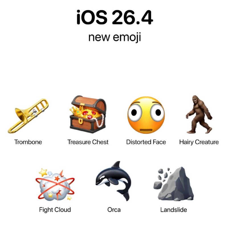 📲 Apple представили новые эмодзи Обновление доступно в бета-версии iOS 26.4 Beta 4. !подписывайся на нас