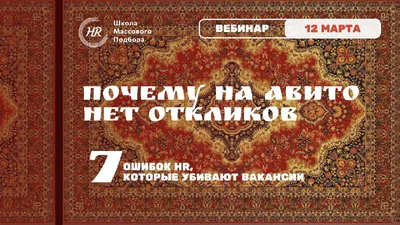 Вебинар 12 марта: Почему на Авито нет откликов: 7 ошибок HR, которые убивают вакансию Вы размещаете вакансию на Авито. Проходит день. Потом второй. Потом третий. Откликов почти нет. И дальше HR на