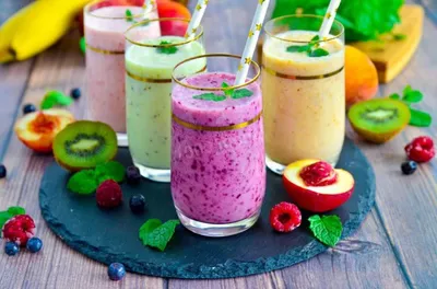 Фруктовый коктейль для похудения в блендере с кефиром ❤️❤️❤️❤️ на 100 грамм: 53/1/2/9 ❤️❤️❤️❤️❤️❤️❤️❤️❤️ ❤️Кефир 400 мл ❤️Бананы 1 шт. ❤️Фрукты 200 шт.