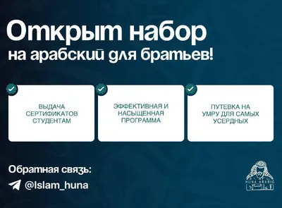 📚 Интенсивный курс арабского языка для начинающих от HUNA ARABIC для братьев. №3 Нажмите чтобы открыть описание 📚 📚Время: В 19:00 (по мск) 📚Дни: ПН СР ЧТ СБ ВС 📚 Урок: 1 час +- 📚 Примерная д
