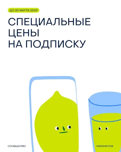 Специальные цены на подписки на Сообщество изионистов👀 До 30 марта вступить в комьюнити можно со скидкой до 50%: ▶️ Тариф на 6 месяцев 102 000₽ 61 200₽ (–40%) ▶️ Тариф на 1 год 204 000₽ 102 000₽
