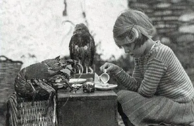 Маленькая Анна жила с родителями на уединенном острове, где не было никого больше Она устраивала чаепития с лучшими друзьями — птенцом ястреба и лангустом. National Geographic, 1938 год. 🤩 Legend H