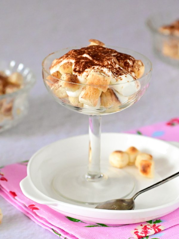 Нежный, эффектный десерт из самых простых продуктов за 25 минут. Сразу после сборки пышечки слегка похрустывают, а если дать десерту немного постоять - становятся мягкими и пропитанными, почти как мин