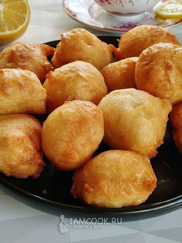 Сироп с лимоном - это находка! Без него просто пончики, а с сиропом вкус совсем другой, яркий. Разводим в теплой воде сахар и сухие дрожжи, даем им пару минут проснуться, добавляем муку и соль, перем