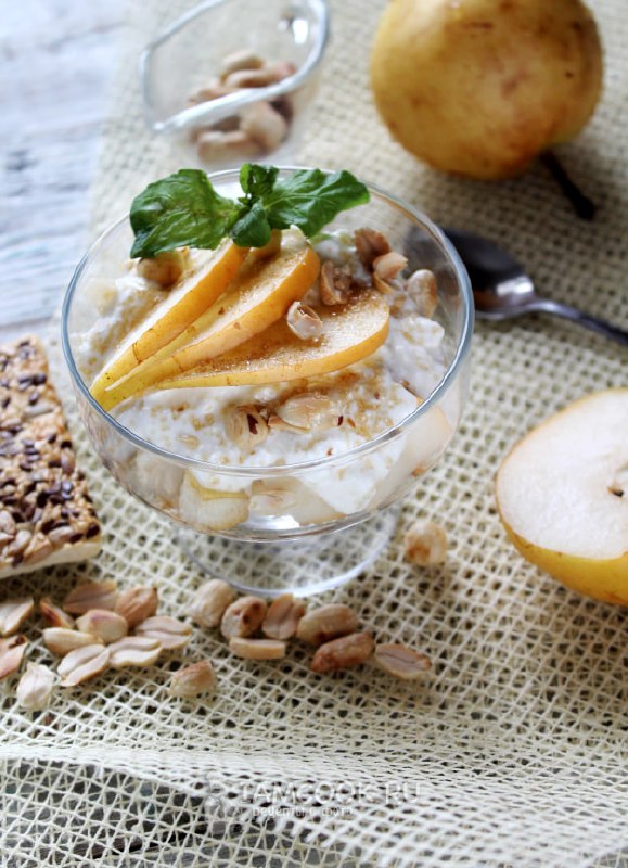Быстрый десерт с грушей за 10 минут: простой и с приятной хрустинкой. 🛒 ИНГРЕДИЕНТЫ: Печенье - 30 г Груша - 50 г Творог - 40 г Сметана - 30 г Орехи - 15 г Сахар - 10 г (по желанию) 205 кКал на 100